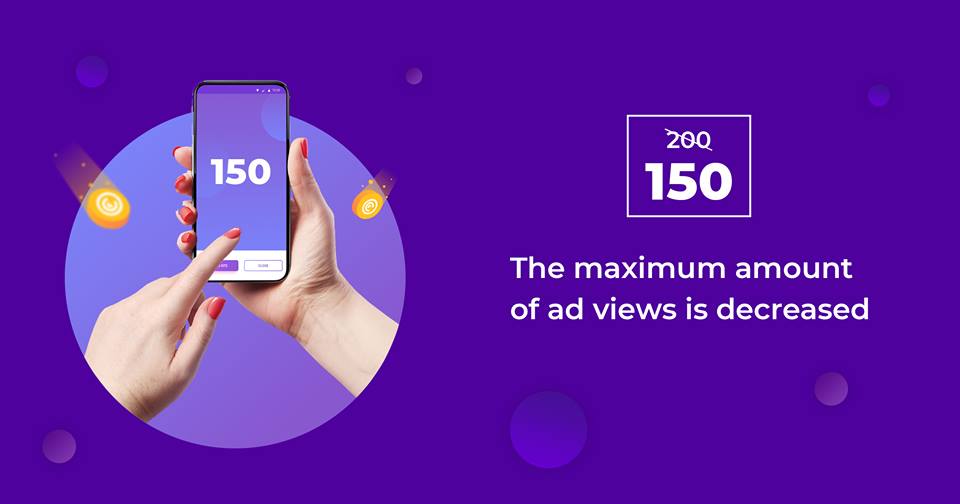Zkontrolovali jsme průměrný počet zobrazovaných reklam našimi uživateli a rozhodli jsme se snížit počet zobrazení na 150 za den, ale stále můžete vydělat až 5 dolarů týdně!